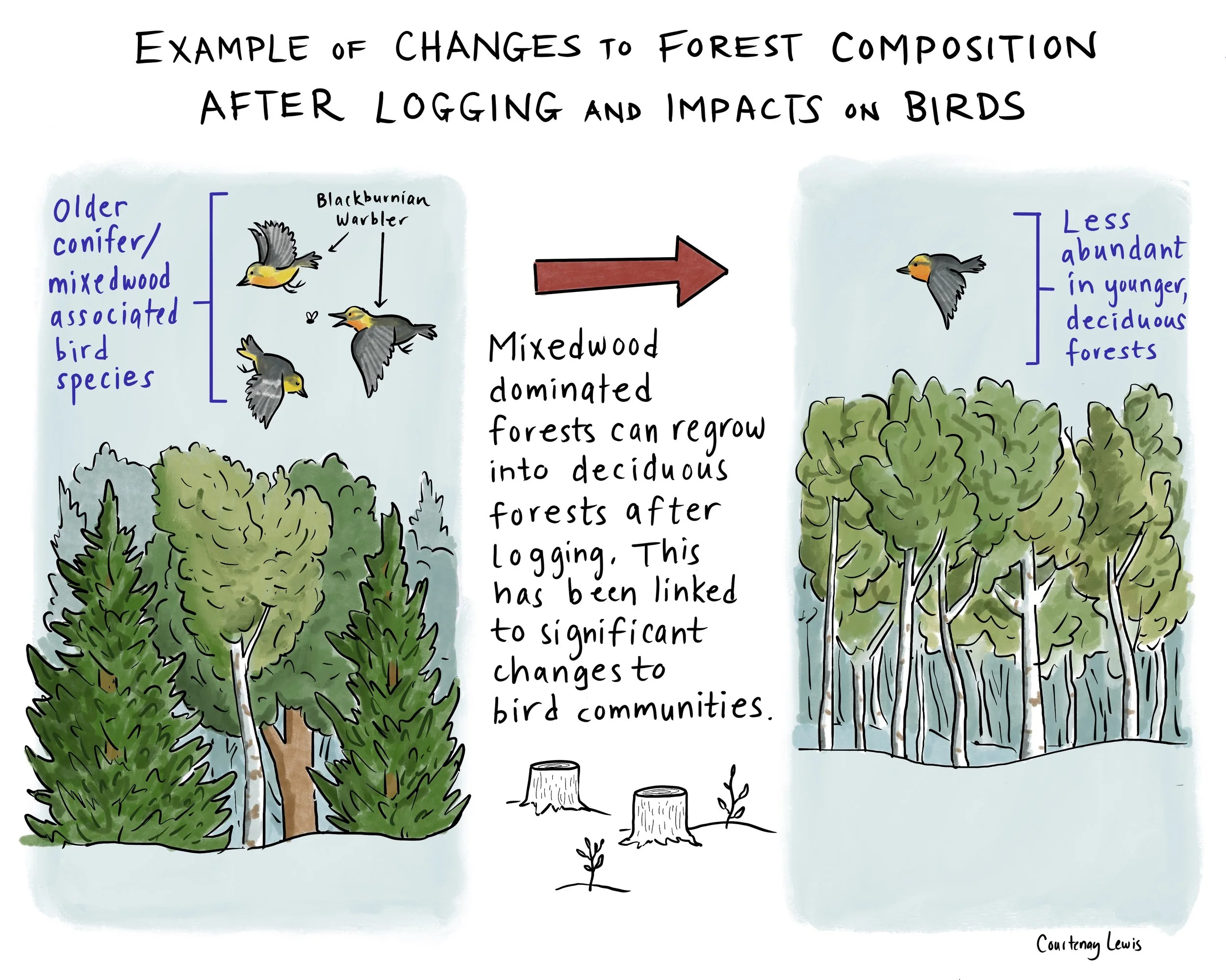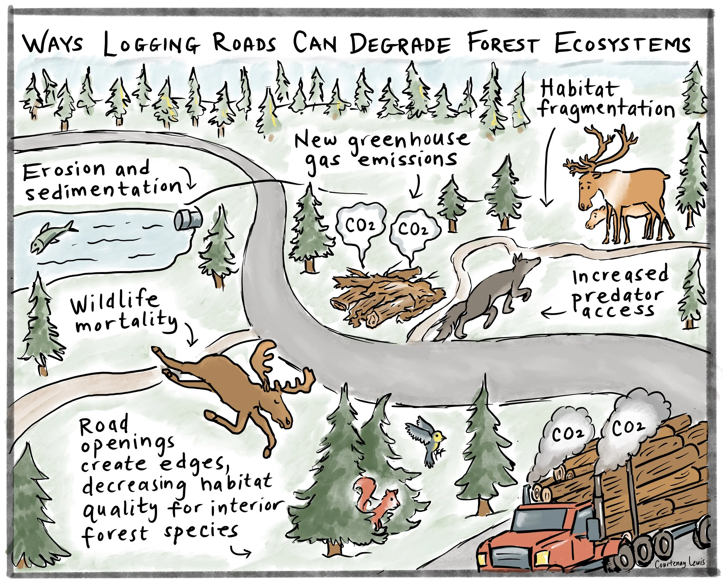 Illustration for Natural Resources Defense Council report, "Pandora's Box: Clearcutting in the Canadian Boreal," with Rebeka Ryvola (2018)